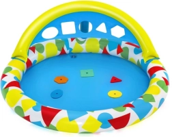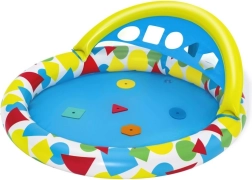 Forvandl varme dage til haveeventyr. BESTWAY Splash & Learn børnebassin tilbyder et lavvandet, sikkert område til de første vandoplevelser og udvikler samtidig færdigheder via den smarte formsorterer i den buede solskærm. Børn kan indsætte 5 skumforme, lære farver og former og samtidig nyde vandsjov.