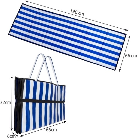 Den sammenfoldelige strandmåtte er den perfekte ledsager til strand- og udendørsaktiviteter. Den er lavet af holdbart polyester med EPE-fyld, hvilket sikrer termisk og vandisolering. Med en tykkelse på 1 cm beskytter den dig mod det hårde underlag, mens den forbliver let og nem at transportere.