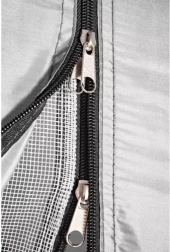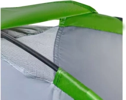 Teltet er udstyret med en praktisk overdækning, der beskytter dine ting mod regn. Myggenet sikrer beskyttelse mod insekter og fri luftgennemstrømning. Korrekt ventilation fremmes også af en topventil med myggenet, der kan beskyttes mod regn.