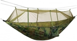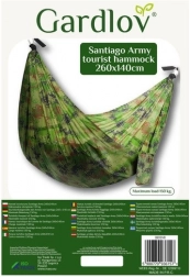Vores turistiske hængekøje Santiago Army er den ideelle følgesvend til udendørs eventyr. Den tilbyder fremragende komfort og beskyttelse mod insekter takket være det integrerede myggenet. Enkel montering gør det muligt hurtigt og nemt at hænge køjen op hvor som helst, du ønsker at slappe af.