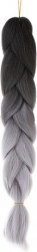 Den varmebestandige fiber er UV-resistent og tåler høje temperaturer, hvilket gør det muligt at style med føntørrer, glattejern eller krøllejern ligesom med naturligt hår. Produktets specifikationer omfatter sort-grå farve, syntetisk materiale og en længde på cirka 60 cm.