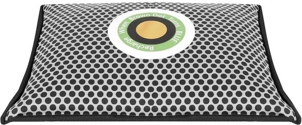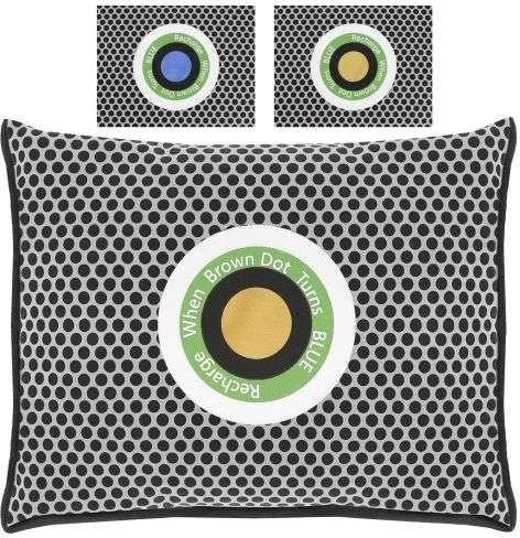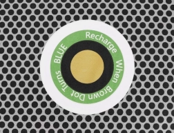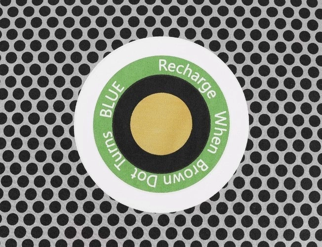 I midten sidder en farveindikator, som tydeligt viser mætningsniveauet. Orange betyder, at absorberen er tør og klar til brug; når den skifter til blå, skal den blot “genoplades” ved at blive tørret (f.eks. i mikrobølgeovn). Derved fordamper fugten, og produktet er klar til gentagen brug – med en levetid på op til 3 år.