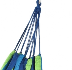 Den komfortable hængekøje uden rundstokke giver stabil og sikker liggekomfort for én eller to personer. Blandingen af bomuld og polyester føles behagelig, samtidig som den er holdbar og nem at vedligeholde – materialet kan maskinvaskes. Takket være den åndbare struktur er afslapningen behagelig selv på varme dage.