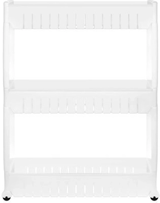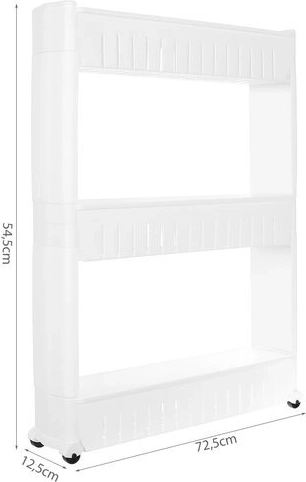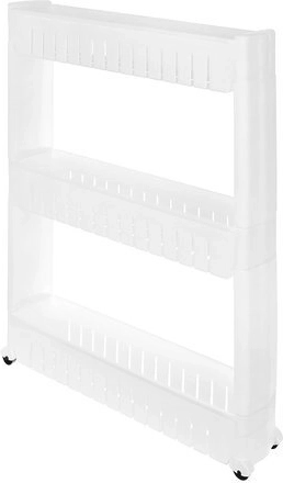 Denne mobile køkkenhylde på hjul er perfekt til at udnytte smalle rum mellem skabe. Lavet af holdbar plast, indeholder tre dybe hylder til organisering af nødvendige genstande.
