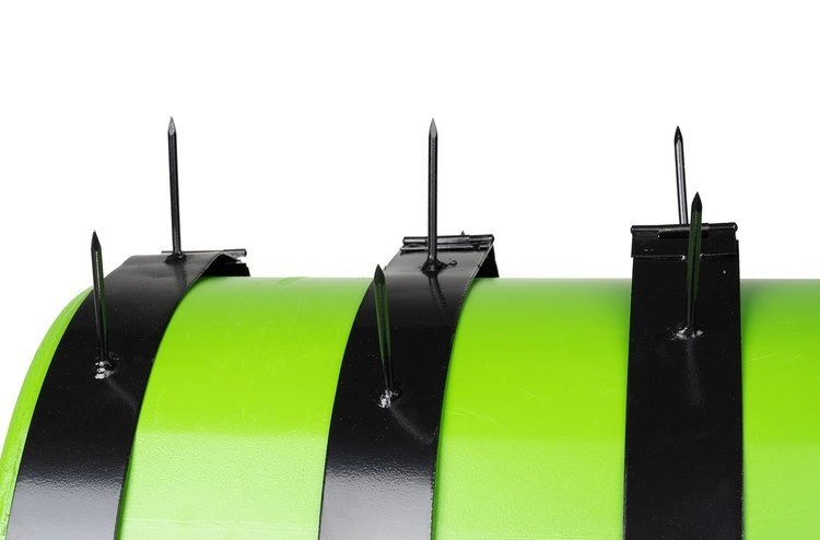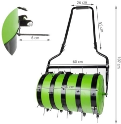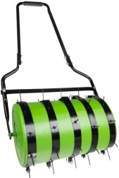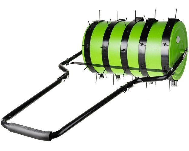Den glatte grønne tromle kan fyldes med op til 35 liter vand, hvilket giver den ideelle vægt til udjævning af overfladen og nedtrykning af frø.