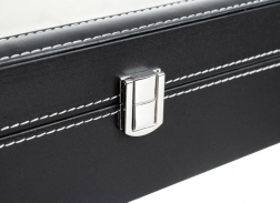 Glaslåget giver et hurtigt overblik og en stilfuld udstilling af kollektionen. Sort økolæder med hvid syning giver et premium look.