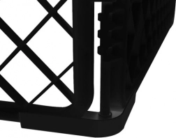 Indhegningen består af fire vægge med en praktisk låge. Dobbelt sikring af låsen forhindrer utilsigtet åbning, og afrundede kanter minimerer risikoen for skader. Takket være det simple indsætningssystem klarer du hurtig montering uden værktøj, og indhegningen kan nemt flyttes efter behov.