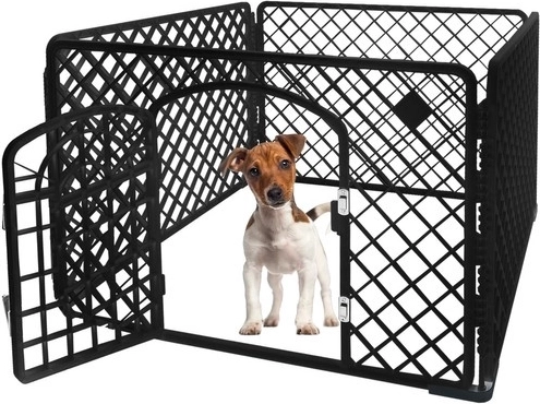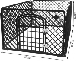 Leder du efter en pålidelig måde at skabe et sikkert og behageligt sted til dit kæledyr? Denne plastindhegning tilbyder alsidig anvendelse til hunde, hvalpe og mindre dyr. Med målene 90 × 90 × 60 cm giver den rigelig plads til fri bevægelse, mens den robuste konstruktion af PP og metaldele sikrer stabilitet og lang holdbarhed.