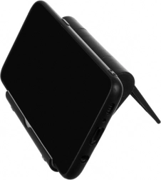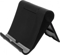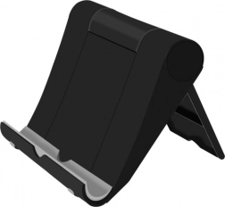 Stativet muliggør trinløs vinkeljustering for behagelig handsfree-visning af indhold. Den stabile base med støtte listes holder de fleste smartphones sikkert i portræt- og landskabsformat.