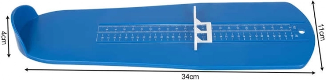 Med måleren og den præcise skala kan du hurtigt og nemt bestemme fodlængden og den standardiserede skostørrelse.