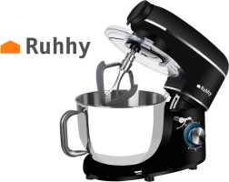 Den alsidige 3-i-1 køkkenmaskine RUHHY kombinerer planetarisk omrøring, 1,5 l glasblender og kødhakker i én kraftfuld enhed med 2200 W effekt. Takket være 6,2 l skål i rustfrit stål med hank, 6 hastigheder + PULSE og tre professionelle tilbehør pisker, blander og ælter du nemt dej – og kan desuden male kød eller lave smoothies. Med stænkskærm og rigt tilbehør, inkl. sprøjtepose.