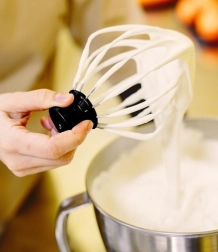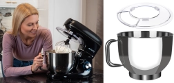 Perfekt gennemblanding af hele skålen takket være de planetariske bevægelser. Skål i rustfrit stål med praktisk hank og stænkskærm holder orden – selv ved høje omdrejninger.