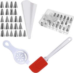 - sprøjtepose + 24 tylle i organizer, æggeadskiller, skraber