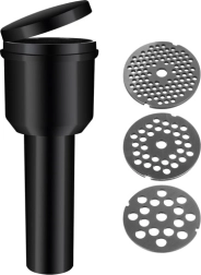 Lav din egen hakkede kødblanding præcis efter smag. Tre skiver med forskellig grovhed og tilbehør til pølsefyldning udvider dine madlavningsmuligheder.