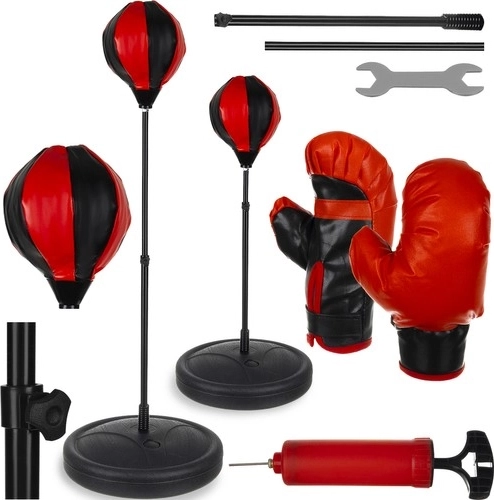Pakken indeholder også en pumpe med nål for nem oppustning af både boksebolden og bolde til andre sportsgrene. Det overordnede design af sættet i rød-sorte farver giver legetøjet et stilfuldt udtryk, der vil imponere enhver lille atlet.