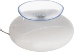 Takket være batteridrift (3× AAA) er du helt fri i placeringen – ingen kabler eller forlængerledninger. Monteringen klares på et øjeblik: den gennemsigtige sugekop er smart skjult ved batterihuset og forstyrrer ikke det samlede udseende.