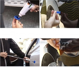 Med dette praktiske PDR-sæt fjerner du buler selv uden dyrt værksted. Glidehammeren med T-håndtag og udskiftelige nylon “pads”/tabs i forskellige størrelser giver effektiv udtrækning af fordybninger uden at beskadige den originale lak. Ideelt til karrosserier efter mindre kollisioner, parkeringsskader eller hagl.
