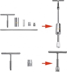 T-håndtag og stålkrop med forkromede dele sikrer styrke, stabilitet og et komfortabelt greb til kontrolleret træk.
