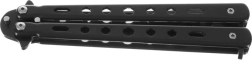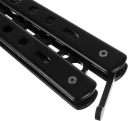 Sort træningsbutterfly er fantastisk til øvelse af knivtricks, uden at komme til skade. Den er udstyret med uskarp klinge, hvilket gør den ideel til sikker håndtering. På grund af sit klassiske design og holdbarhed vil du elske den allerede ved første brug.
