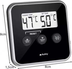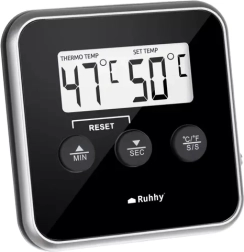 Steg saftigt kød, temperér chokolade eller hold styr på kaffebrygningen med sikkerhed for korrekt temperatur. Det digitale RUHHY-termometer med rustfri sonde måler pålideligt i området −20 til 250 °C med et trin på 1 °C. Det store LCD-display er meget let at aflæse og lader dig hurtigt indstille måltemperaturen samt skifte mellem °C og °F.