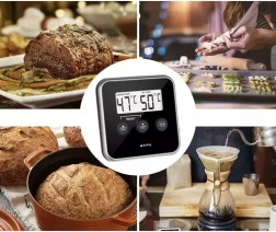 Når den indstillede temperatur er nået, aktiveres en lydalarm. Et integreret minutur og en magnet på bagsiden gør timing og fastgørelse på metaloverflader nem.