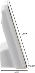 Ud over måling tilbyder enheden praktisk ur, vækkeur med 8 minutters snooze og kalender. Nem betjening sikres af et panel med 5 knapper og lydfeedback under indstilling. Takket være de kompakte mål 9,5 × 9,5 × 4 cm passer den i stue, soveværelse, børneværelse og kontor – der skal kun bruges ét AA-batteri.