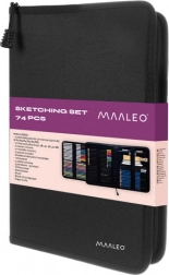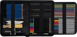 Komplet skitsesæt med 74 dele i et elegant sort tekstiletui med lynlås og rem. Takket være den faste organisering med elastiske stropper har hvert værktøj sin plads, så transport og opbevaring er nemt. Velegnet til begyndere og øvede, til hjemmet, skolen og tegnekurser. Et fantastisk gave-tip til alle, der elsker at tegne og male.