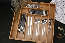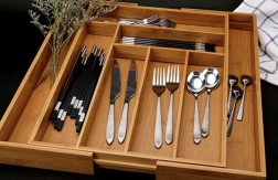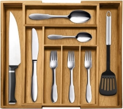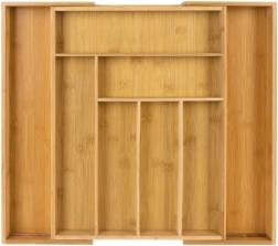 Den fleropdelte indretning holder bestik og redskaber pænt adskilt og lige ved hånden. Det naturlige udseende passer til både moderne og klassiske køkkener.