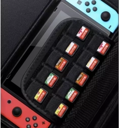 Mesh-lomme til tilbehør og rum til 10 spillekassetter holder alting overskueligt og sikkert på plads.