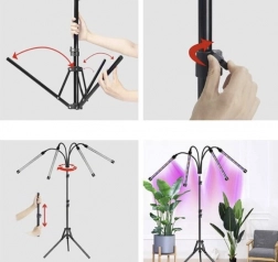 Ret hver panel præcist mod planterne. Bøjelige arme og højdejusterbart stativ dækker et større område uden skygger.