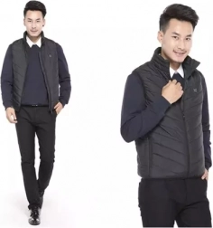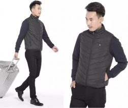 Vesten kan tilsluttes en powerbank via USB for øjeblikkelig opvarmning med tre intensitetsniveauer i ni zoner på tværs af torsoen.