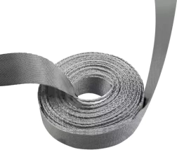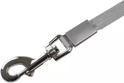 Stærk tekstilstrop med glat gang og robust forkromet karabinhage for sikker fastgørelse til halsbånd eller sele.