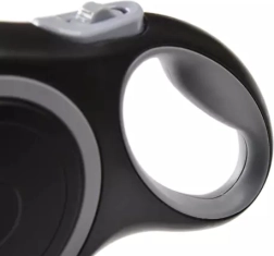 Snoren er designet til maksimal komfort: Det ergonomiske og skridsikre håndtag ligger perfekt i hånden og muliggør nem betjening med én hånd. Den jævne oprulningsmekanisme forhindrer, at stroppen hænger, så gåture bliver både sikrere og mere flydende for dig og din hund.