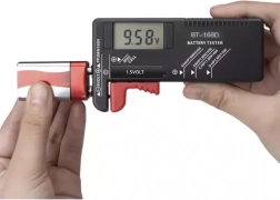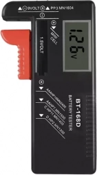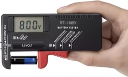 - Bred kompatibilitet: AA, AAA, C, D, 9V, knapcelle 1,5 V, udvalgte Li‑ion cylindriske celler (f.eks. 18650, 16340, 14500, 10440, 21700) – til hurtig spændingskontrol.