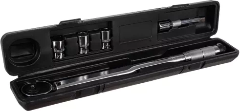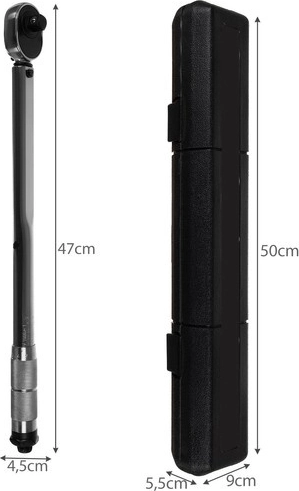 Robust momentnøgle 1/2" med skralde og sæt af toppe 17/19/21 mm samt forlængerstykke til præcis til- og afrømning af skrueforbindelser. Tilbyder momentområde 28–210 Nm, tovejs drift højre/venstre, låsning LOCK/UNLOCK og et praktisk beskyttende etui til sikker opbevaring. Ideel til sekskantede og firkantede skruer, kroge og motorcykelmøtrikker.
