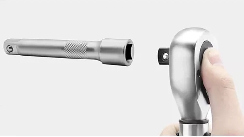 I pakken finder du alt nødvendigt: 3 toppe 17/19/21 mm og en forlængerstang for bedre adgang. Den kvalitetsstål konstruktion modstår deformation og brud, og silikoneelementer øger arbejdskomforten. Medfølger også et robust etui, som beskytter værktøjet under opbevaring og transport.