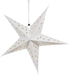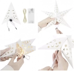 Lyspapirstjerne LED er det perfekte supplement til din festlige udsmykning. Denne stjerne er lavet af fint papir med stjerne- og måneformede udskæringer, som danner et magisk lys-spil på vægge og loft når den lyser. Ideel til forskellige rum som stue, spisestue, køkken eller soveværelse.