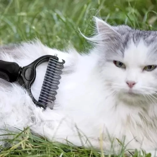- dobbeltsidet pelstrimmer og pelsrive