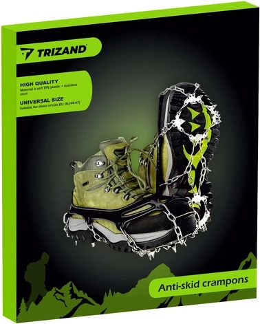 Pålidelige skridsikre brodder TRIZAND i størrelse XL (44–47) giver sikkert fodfæste på sne og is. Takket være stålpiggene og de robuste kæder tilbyder de fremragende trækkraft, stabilitet og sikkerhed på vinterture og i bytrafik. Den elastiske TPE-overtræk tages hurtigt på, sidder fast på skoen og skader ikke fodtøjet. Medfølger et praktisk etui med lynlås for nem transport.
