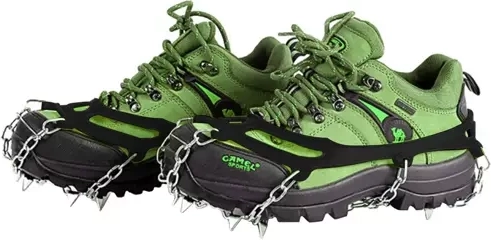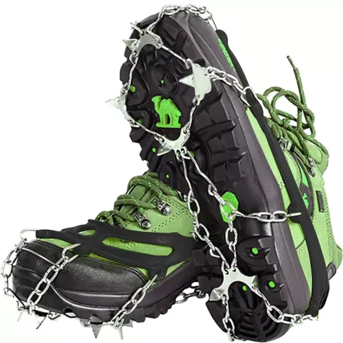 - Fremragende greb: 8 pigge i rustfrit stål og robuste kæder for sikkert fodfæste.