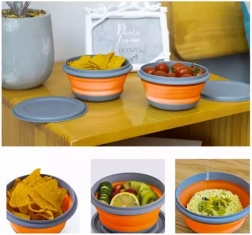 Mød vores foldbare silikoneskåle, som nemt kan foldes ud og sammen, hvilket sparer plads. Disse skåle er perfekte til opbevaring, ikke kun i køkkenet, men også på rejser, til picnic eller på arbejde. Sættet indeholder tre forskellige størrelser beholdere, der tillader opbevaring af forskellige volumener mad.