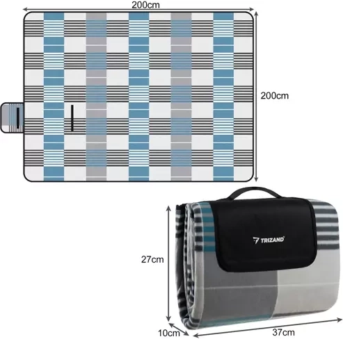 Dette picnictæppe er lavet af flannelstof og har en isolerende aluminiumsbelægning på undersiden. Det er blødt at røre ved og forhindrer fugt i at trænge igennem, hvilket gør det ideelt til picnic eller afslapning i haven/på stranden.