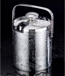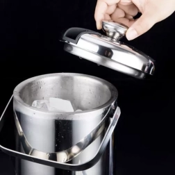 Denne isspand i rustfrit stål med tilbehør er et must for elskere af kolde drikke. Takket være den dobbeltvæggede konstruktion holder den isen frossen længere, og kapaciteten på 1,3 l gør det nemt at servere isterninger ved enhver sammenkomst. Det ergonomiske håndtag gør det let at bære spanden med indhold.