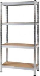 Den robuste metallreol med 4 justerbare hylder er designet til at bære tunge belastninger og er ideel til brug i forskellige rum som garage, værksted eller lager. Reolen er lavet af galvaniseret stål og holdbare MDF-plader, hvilket sikrer lang levetid og pålidelighed.
