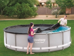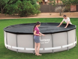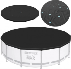 Praktisk og robust cover til runde rammebassiner med diameter 427 cm holder vandet rent længere og klar til badning. Det sorte overtræk forbedrer den termiske isolering, reducerer tilsmudsning og kan nemt og sikkert fastgøres med snore, så vinden ikke blæser det af.