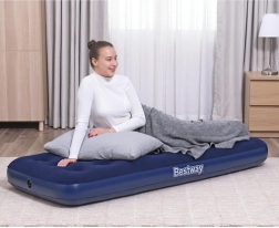 Nyd en behagelig søvn hvor som helst – den oppustelige madras fra BESTWAY med silkeblød velouroverflade er behagelig at røre ved og får lagnet til at ligge bedre fast. Den robuste coil‑beam-konstruktion sikrer stabilitet og elasticitet, så madrassen bevarer formen og giver god støtte til kroppen.