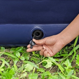 Takket være sikkerhedsventilen er oppumpning, trykregulering og tømning klaret på ingen tid. Madrassen er velegnet til indendørs og udendørs brug og er perfekt til gæster, sommerhus eller telt. I pakken medfølger en vandafvisende reparationslap til hurtig udbedring af mindre skader.