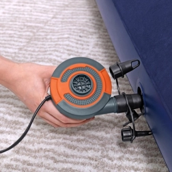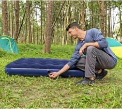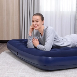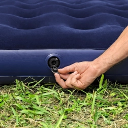 Den integrerede ventil til hurtig oppustning og tømning forkorter forberedelsen til få minutter. Når luften er lukket ud, foldes madrassen nemt sammen til kompakte mål for pladsbesparende opbevaring og transport. I pakken medfølger også en reparationslap til mindre skader.