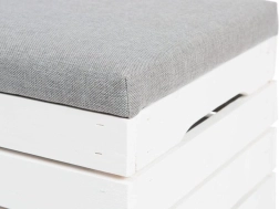 Den robuste konstruktion af tørret og høvlet grantræ med brede lameller (op til 13 cm) sikrer stabilitet og lang levetid. Høj-elastisk T-25-skum giver behagelig siddekomfort, uanset om du bruger puffen som bænk i entréen, fodskammel ved sofaen eller et praktisk lille bord på altanen.