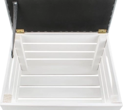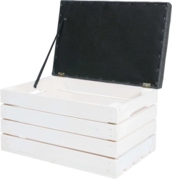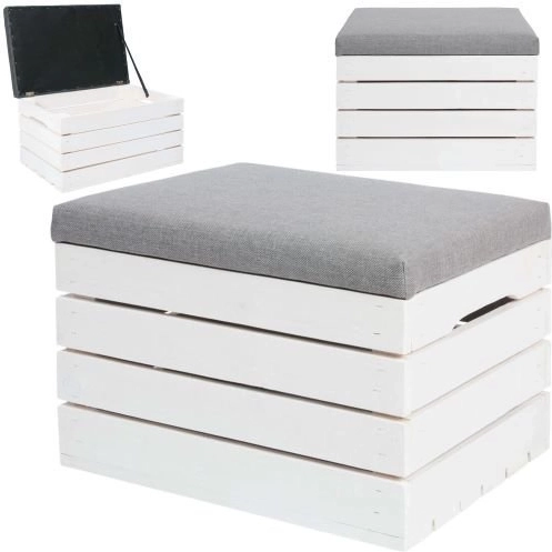 Det opklappelige låg på hængsler med rem giver adgang til et stort opbevaringsrum til tæpper, sko eller legetøj og holder hjemmet ryddeligt.